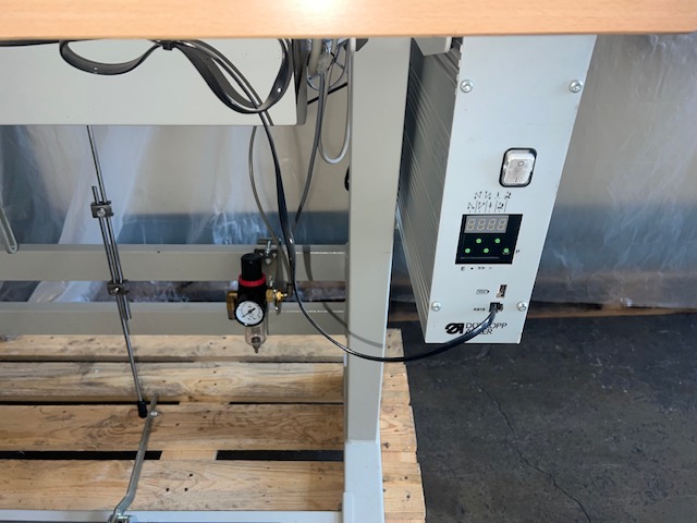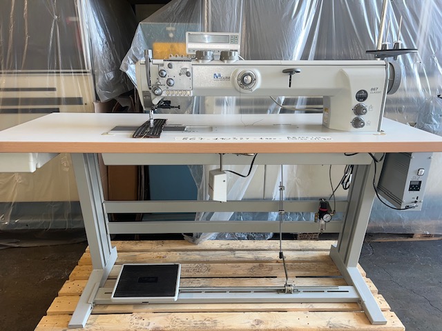 3-TRANSPORT 1-NEEDLE LONG ARM SEWING MACHINE, CAPACITY 70cm,  THREAD-TRIMMER, EFKA DC.1550 MOTOR, 220V, DOUBLE REGULATIONS (HALF-NEW)