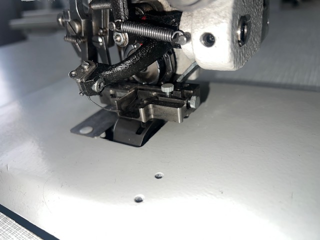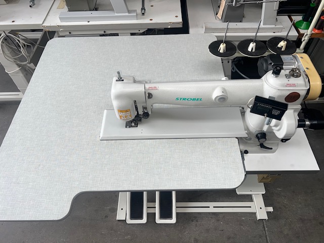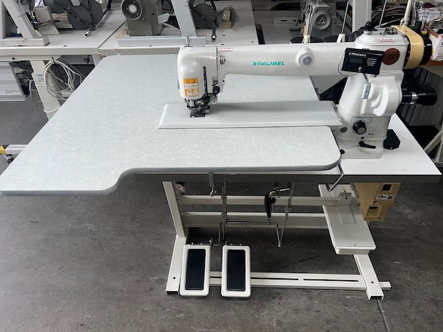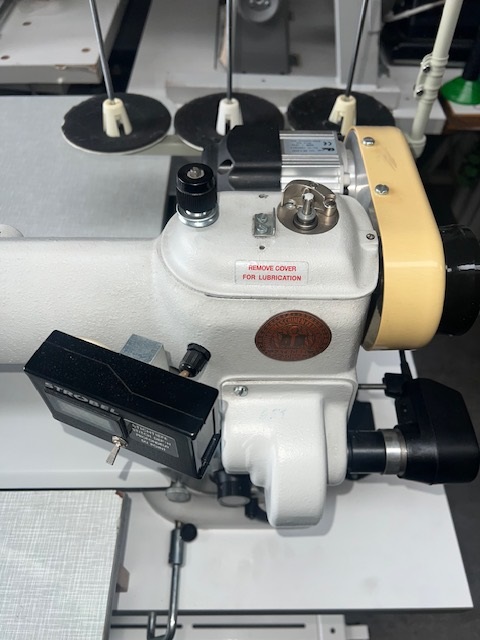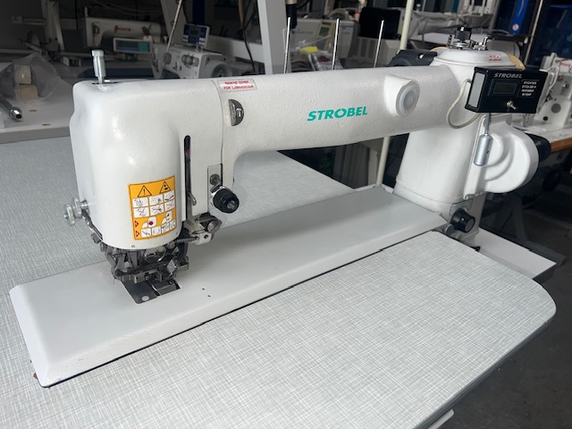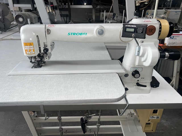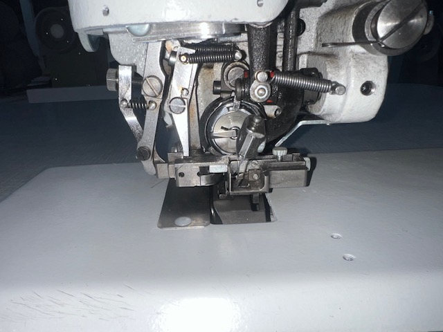 BLIND STICH WITH LONG ARM SEWING MACHINE FOR THE CLOSING OF THE JACKET'S BOTTOM LINING WITH EFKA DC 1200, 220V AND SMALL BLACK DISPLAY, WHITE (HALF-NEW)