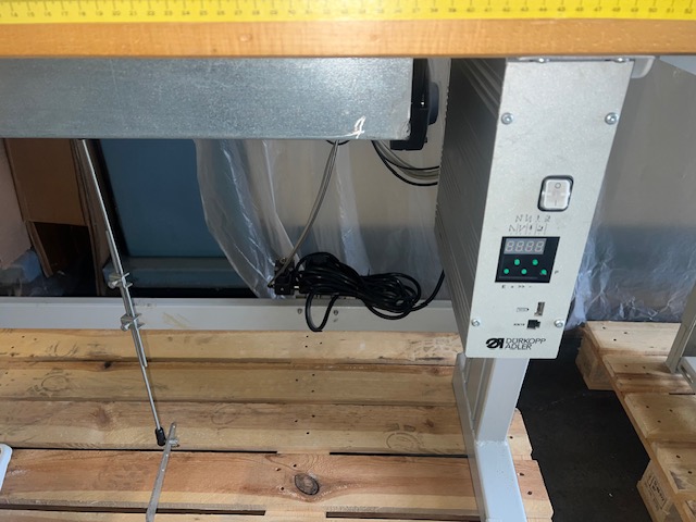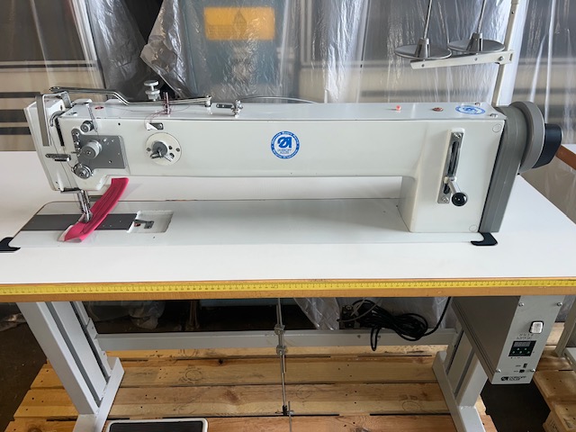 MACCHINA PER CUCIRE TRIPLICE TRASPORTO, 1AGO, A BRACCIO LUNGO, UTILE 65cm, MOTORE EFKA DC.1550, 220V, ALZA-PIEDINO PNEUMATICO (BIANCA)