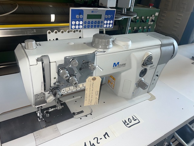 1-NEEDLE 3-TRANSPORT FLAT SEWING MACHINE, INCREASED CROCHET, THREAD-TRIMMER, INTEGRATED 220V DAC MOTOR, GREY-BLUE PANEL