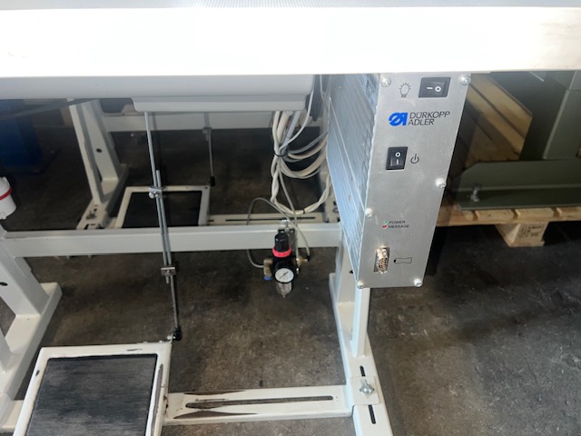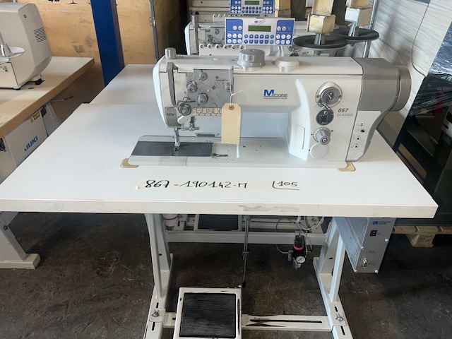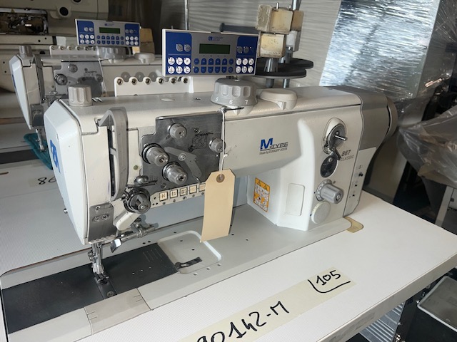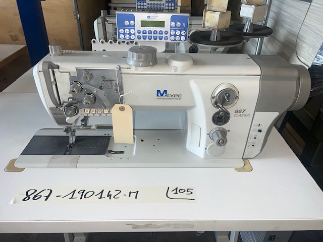 1-NEEDLE 3-TRANSPORT FLAT SEWING MACHINE, INCREASED CROCHET, THREAD-TRIMMER, INTEGRATED 220V DAC MOTOR, GREY-BLUE PANEL
