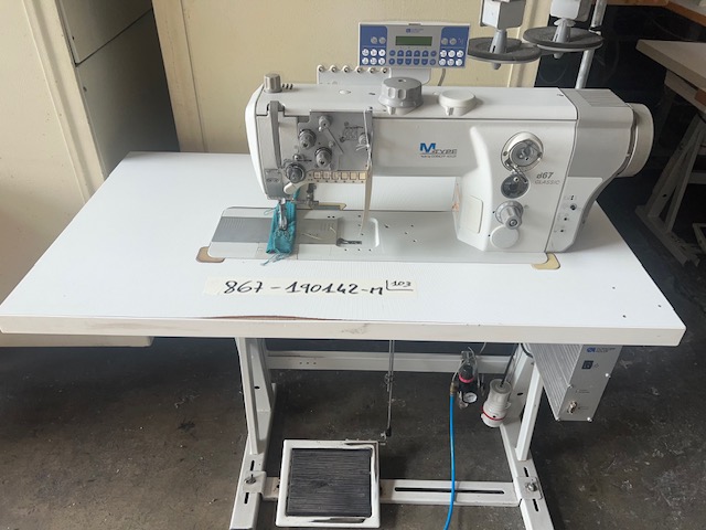 1-NEEDLE 3-TRANSPORT FLAT SEWING MACHINE, INCREASED CROCHET, THREAD-TRIMMER, INTEGRATED 220V DAC MOTOR, GREY-BLUE PANEL