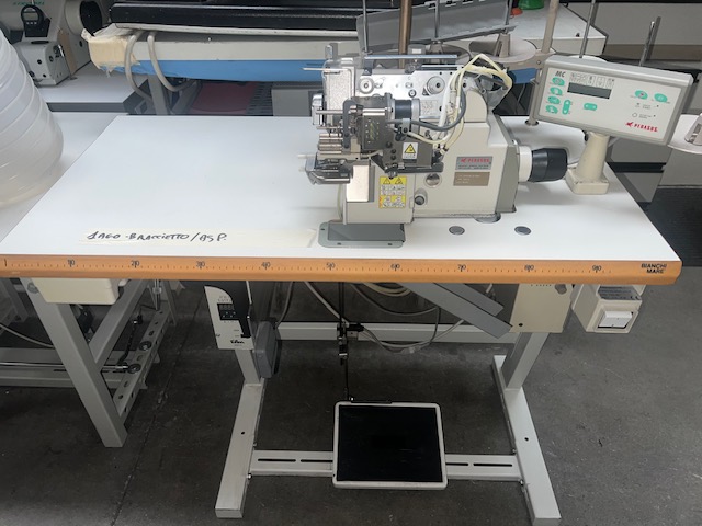 1-NEEDLE OVERLOCK MACHINE, WITH AUTOMATIC ELASTIC INSERTION AND CUTTING, SMALL ARM, EFKA DC.1500 MOTOR, WITH PANEL, CHAIN SUCTION