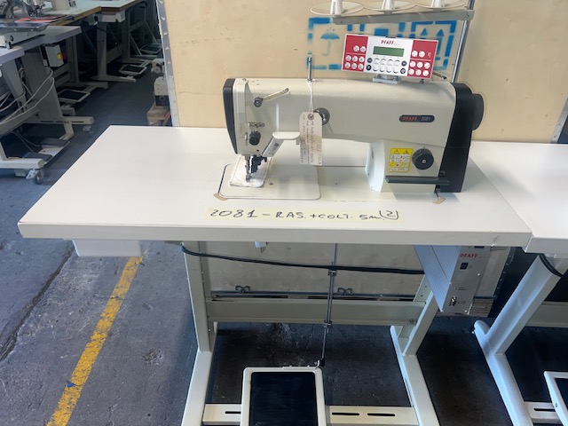 1-NEEDLE LOCKSTITCH SEWING MACHINE, NEEDLE STITCH TRANSPORT, WITH TRIMMING KNIFE, 5mm, THREAD-TRIMMER, INTEGRATED 220V MOTOR+PANEL (HALF-NEW)