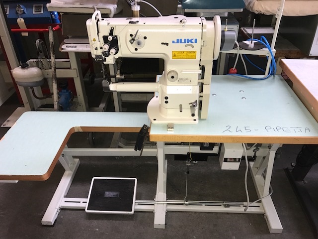 JUKI DSC-245 BIANCA, 1 AGO TRIPLICE TRASPORTO TRASFORMATA A PIPETTA CON POSIZIONATORE FIR E ALZA PIEDINO.